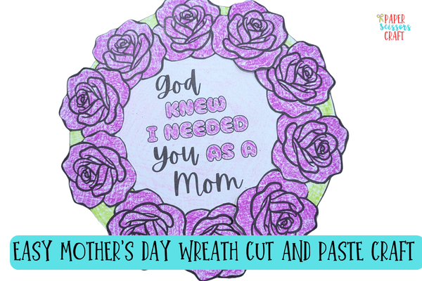 Easy Mother’s Day Wreath Cut and Paste Craft for Kids with Template