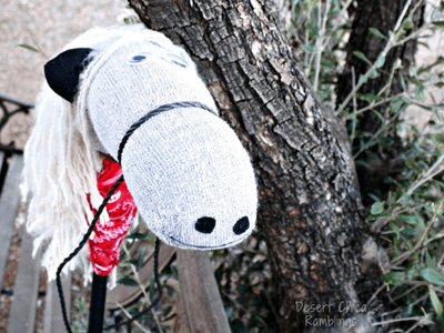 Another great one from Desert Chica a Craft a stick horse from a sock, stick, and some yarn. Kids can gallop around the house or yard with their handmade steed.