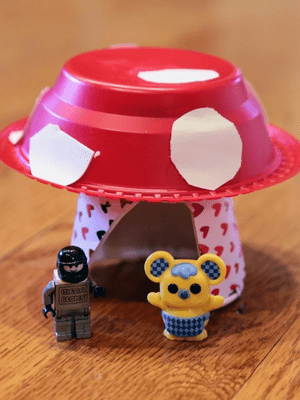Use bowls and cups to build cute mushrooms. Great for forest-themed crafts or fairy garden fun. Find out more at Plate in 28.