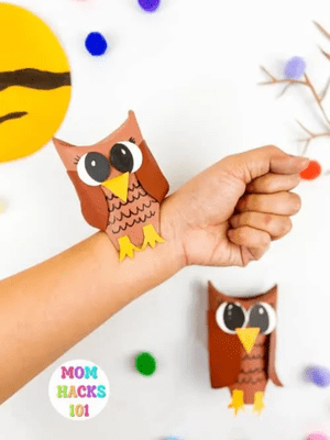 Make a wearable owl craft from toilet paper rolls and paper scraps. It’s creative, quirky, and lets kids wear their favorite forest friend. Get full instructions at Mom Hacks 101.
