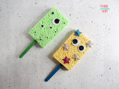 Turn kitchen sponges into goofy monster puppets with googly eyes and fun shapes. They’re silly, soft, and perfect for puppet shows. Get more at The Mindful Toddler.