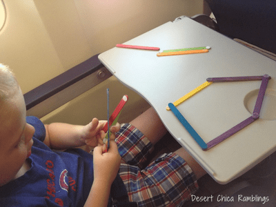 Pack colored craft sticks with Velcro or magnets for on-the-go building fun. It’s a simple and quiet travel activity that sparks creativity. Find full instructions at Desert Chica. Comes with FREE flashcards.