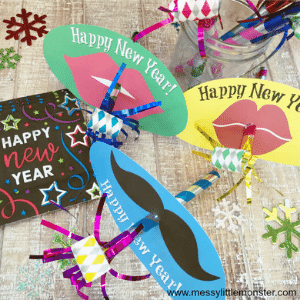 Let’s review a few different options for making a cute New Year’s Eve noise maker craft with kids this holiday and really get into the holiday spirit.