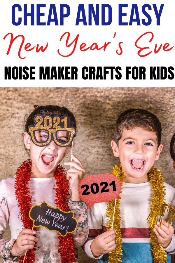 Cheap and easy New Year's Eve noise maker crafts for kids Pinterest pin.