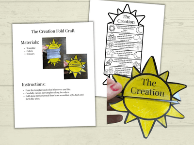 Downloading the Creation template is quick and simple. After completing your purchase, the digital file will be available for immediate download. You can print it at home or at a local print shop to get started right away. The template is reusable, so you can create multiple crafts for different children or classrooms. Simply print, color, cut, and fold to bring the story of Creation to life.