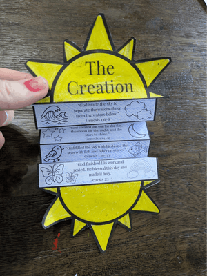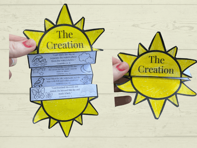 This folding paper craft brings the Creation story to life in a hands-on way. As children color and fold each section, they can see the story unfold one day at a time, reinforcing what they’ve learned. The process of assembling the craft encourages fine motor skills, sequencing, and memory, all while focusing on the message of God’s creative work. Children gain a sense of accomplishment as they complete the craft, and it becomes a visual reminder of the Creation story. By making learning interactive, kids are more likely to remember and discuss what they have learned.