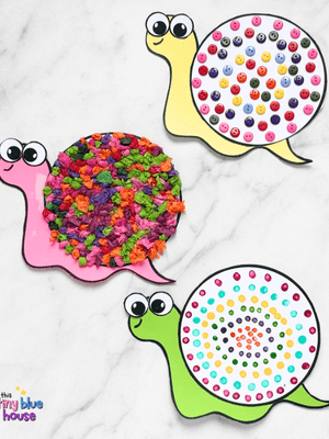Kids decorate snail shells with a swirl of colorful tissue paper bits. It’s a playful and creative way to explore textures and color combinations. From This Tiny Blue House.