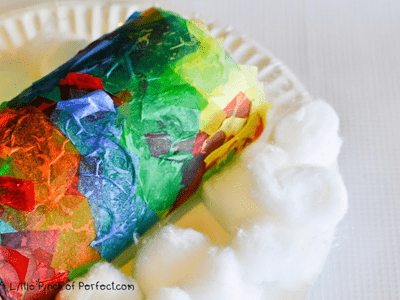 Kids arrange tissue paper in rainbow order to create a cheerful, colorful arch. It’s a great craft for practicing color recognition and it includes a free template.