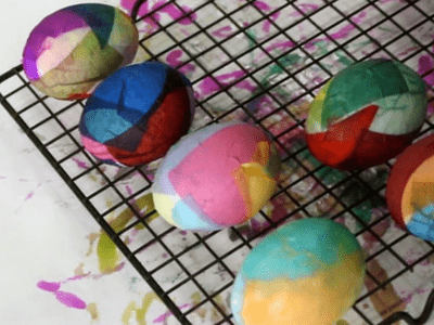 Use bleeding tissue paper to “dye” Easter eggs in bright, tie-dye colors. It’s a mess-free twist on traditional egg decorating. Also from The Crafty Blog Stalker.