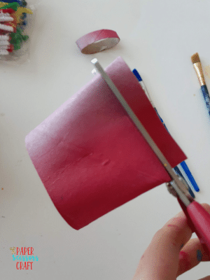 After the paint dries, cut the toilet paper roll into strips as wide or as narrow as you like. We did about 1/2 an inch and 1 toilet paper roll made 7-8 petals.